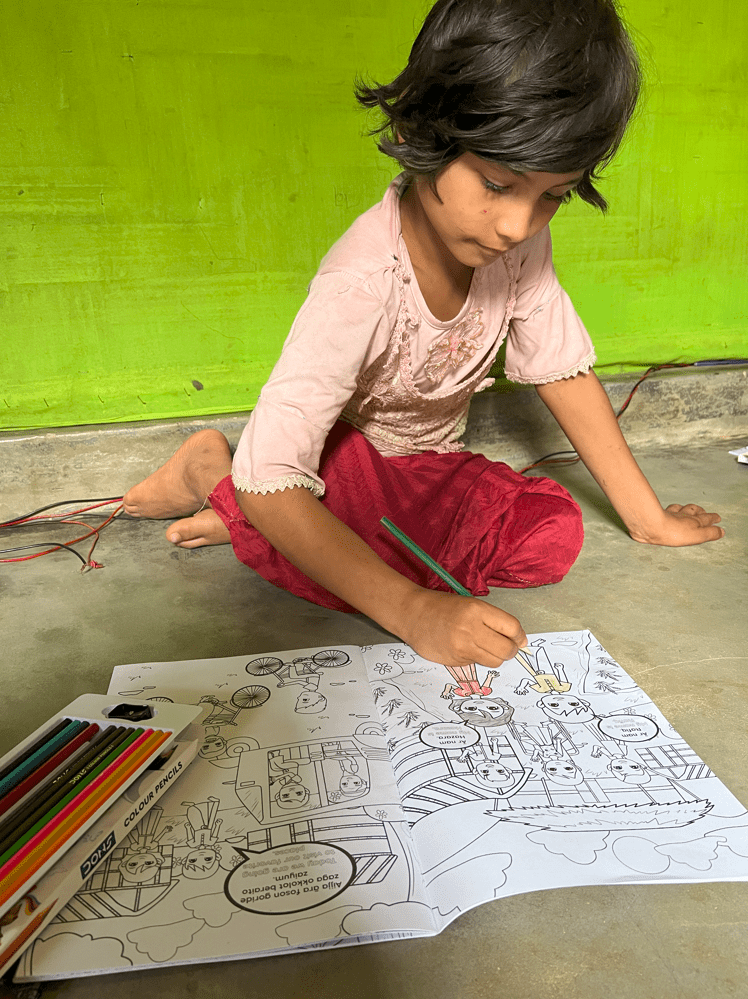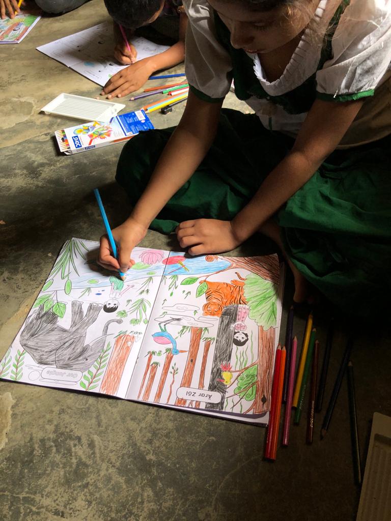 We started donating 500 coloring books at a time in the Rohingya refugee camps, hosting coloring competitions and providing coloring pencils.