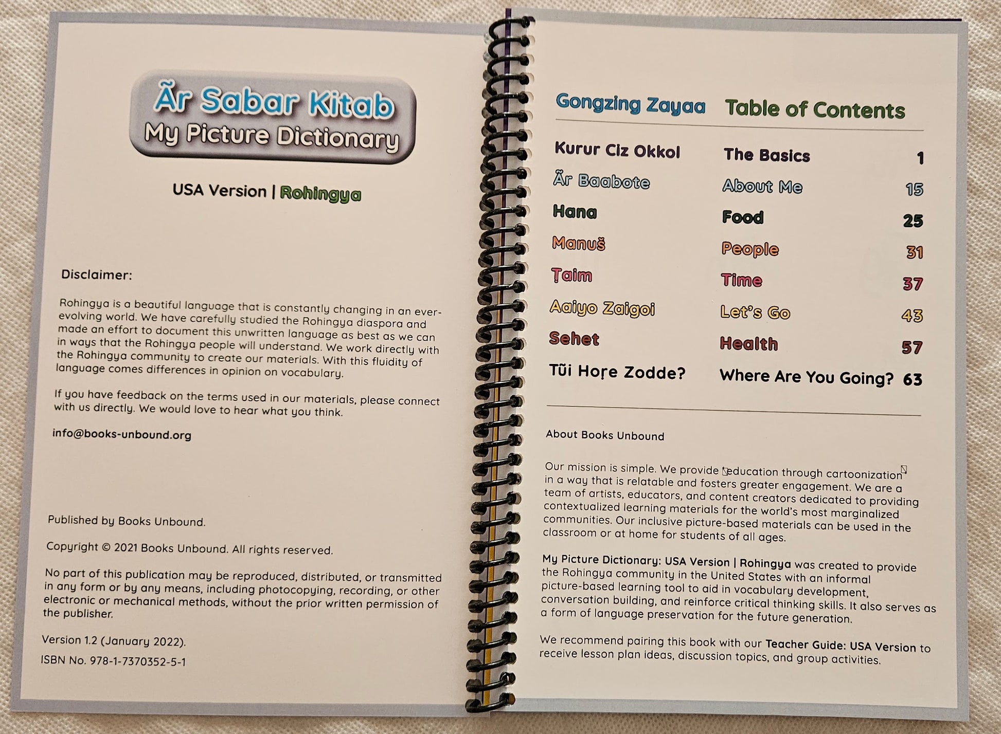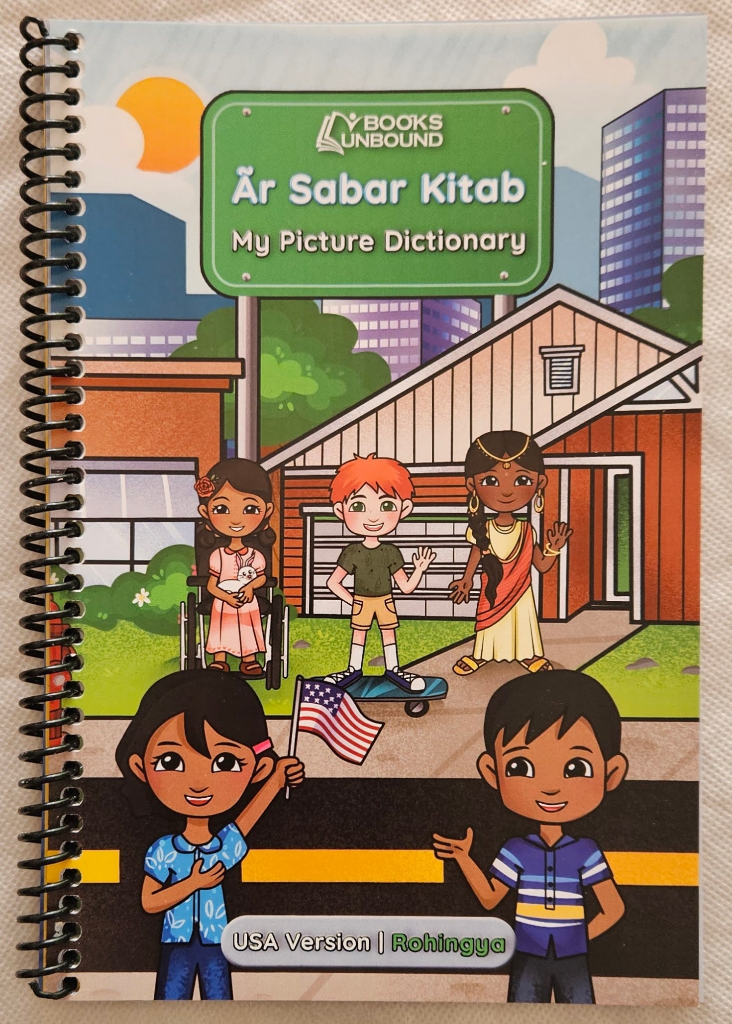 The pilot version and first print-run of our Rohingya Picture Dictionary - designed to represent the Rohingya community in the United States.