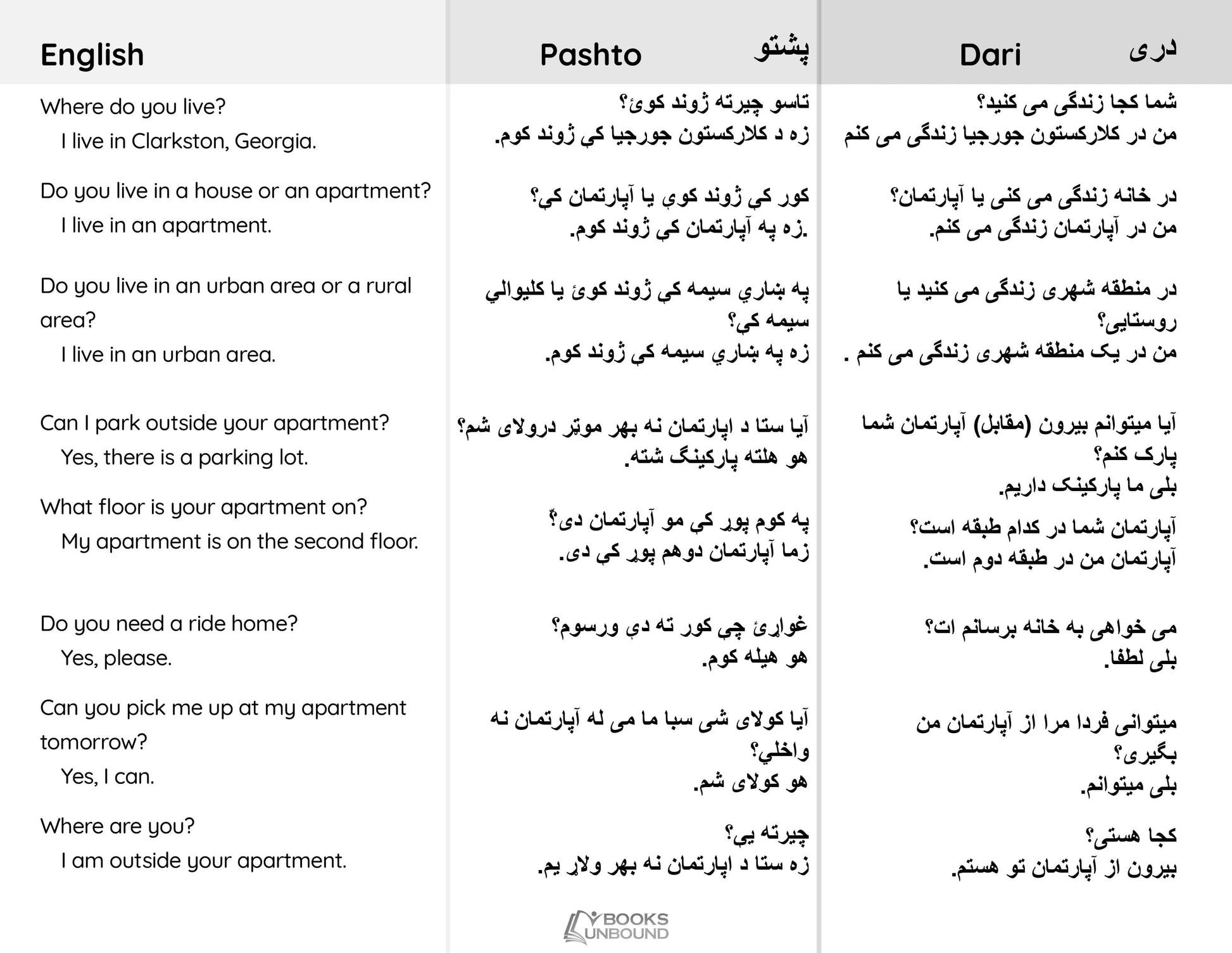 We created this ESL printable for refugees who are settling into a new apartment neighborhood, which provides vocabulary and common phrases to elicit conversation-building activities.