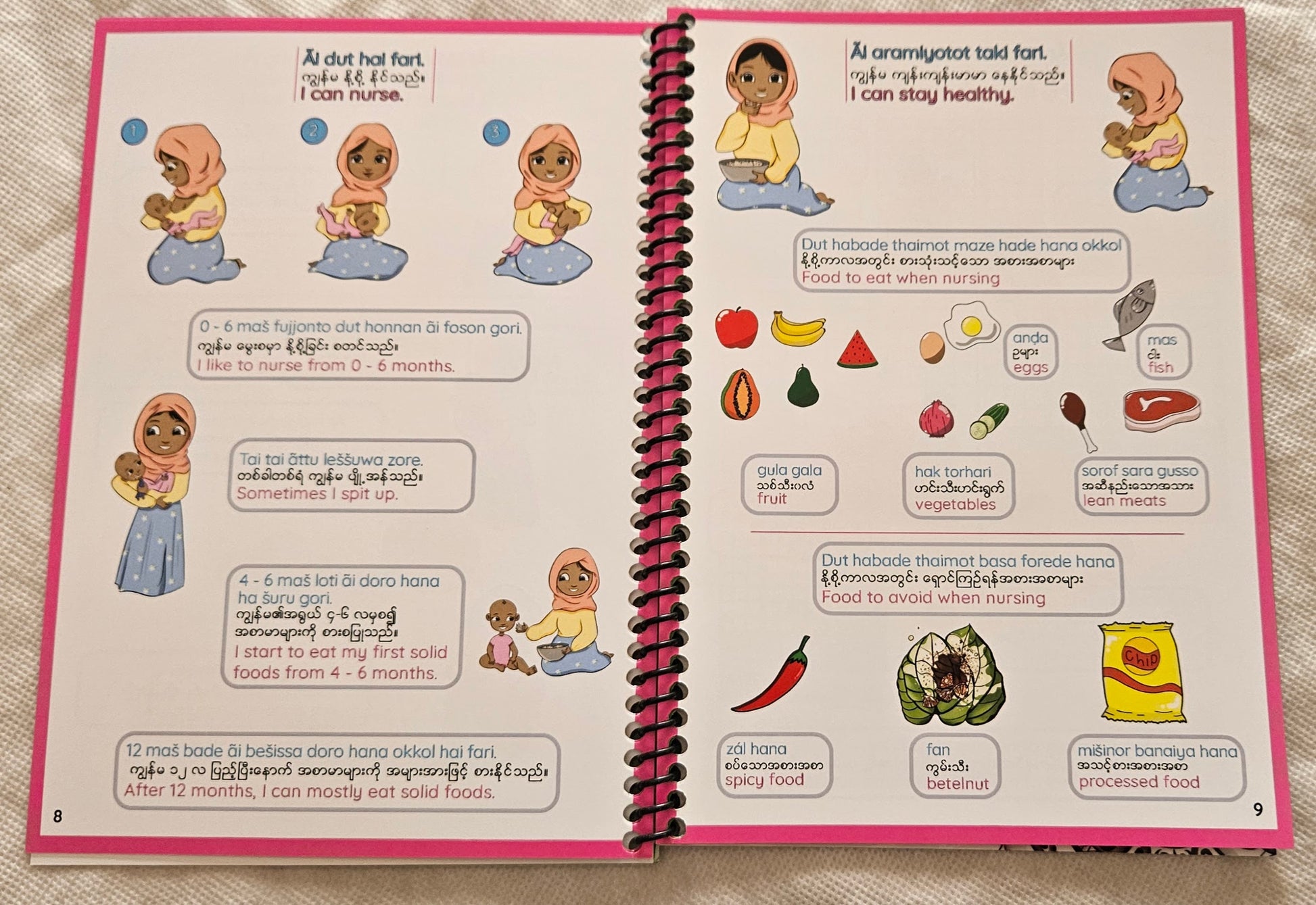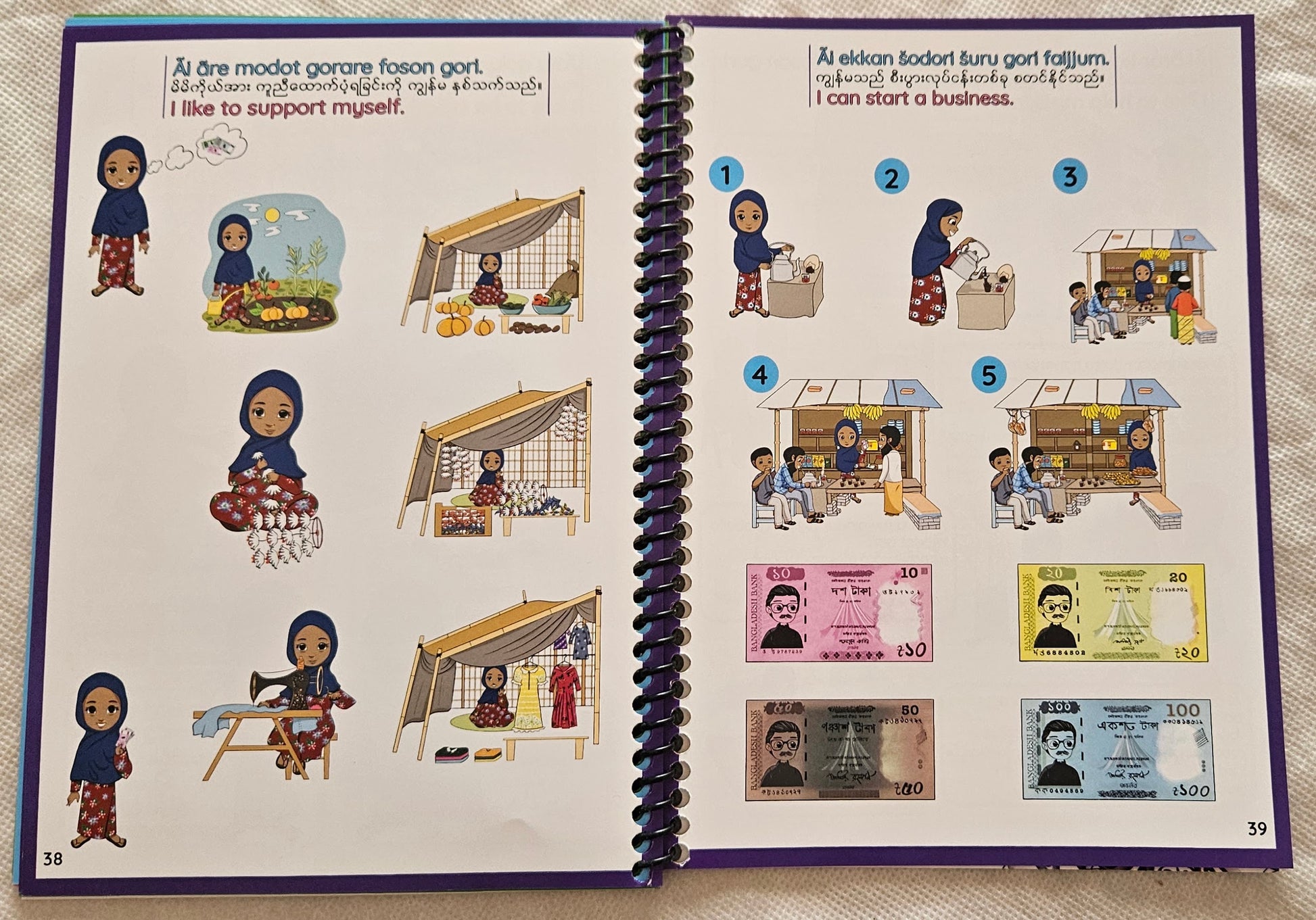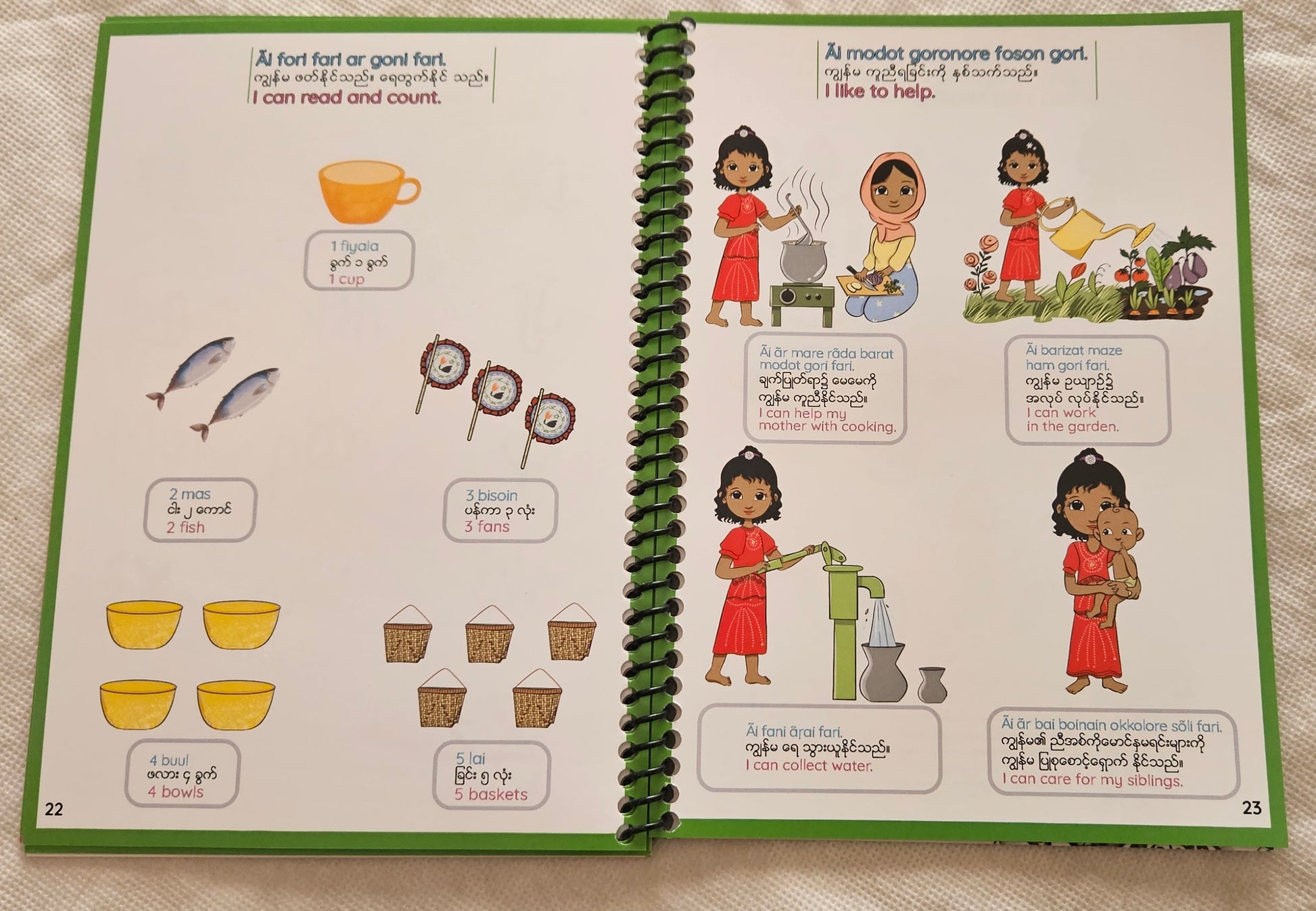 Translation - We used this book as a pilot for the Rohingya language translation. As a result, we have since updated vocabulary throughout the book with a more accurate Rohingya translation, thanks to the assistance of International Literacy & Development (ILAD).