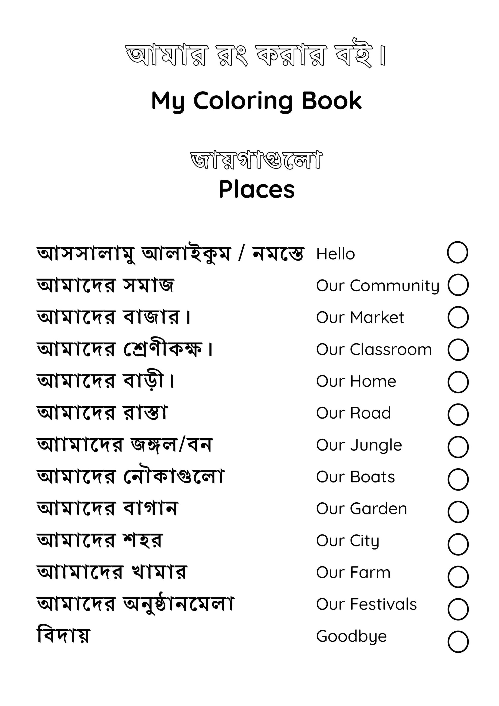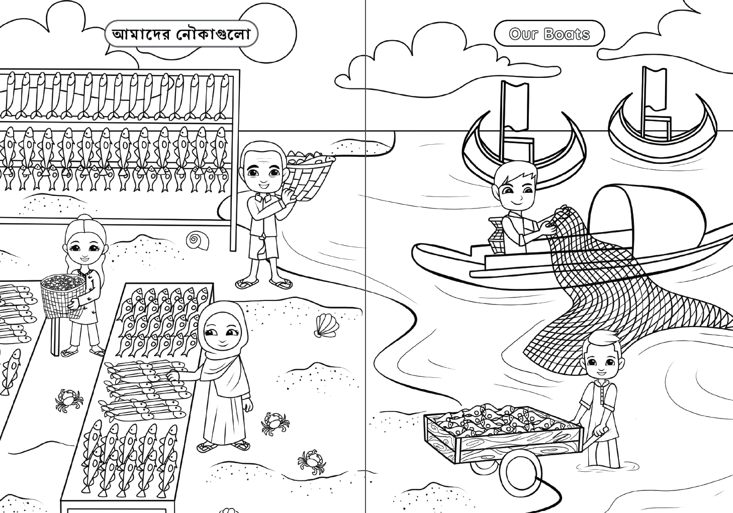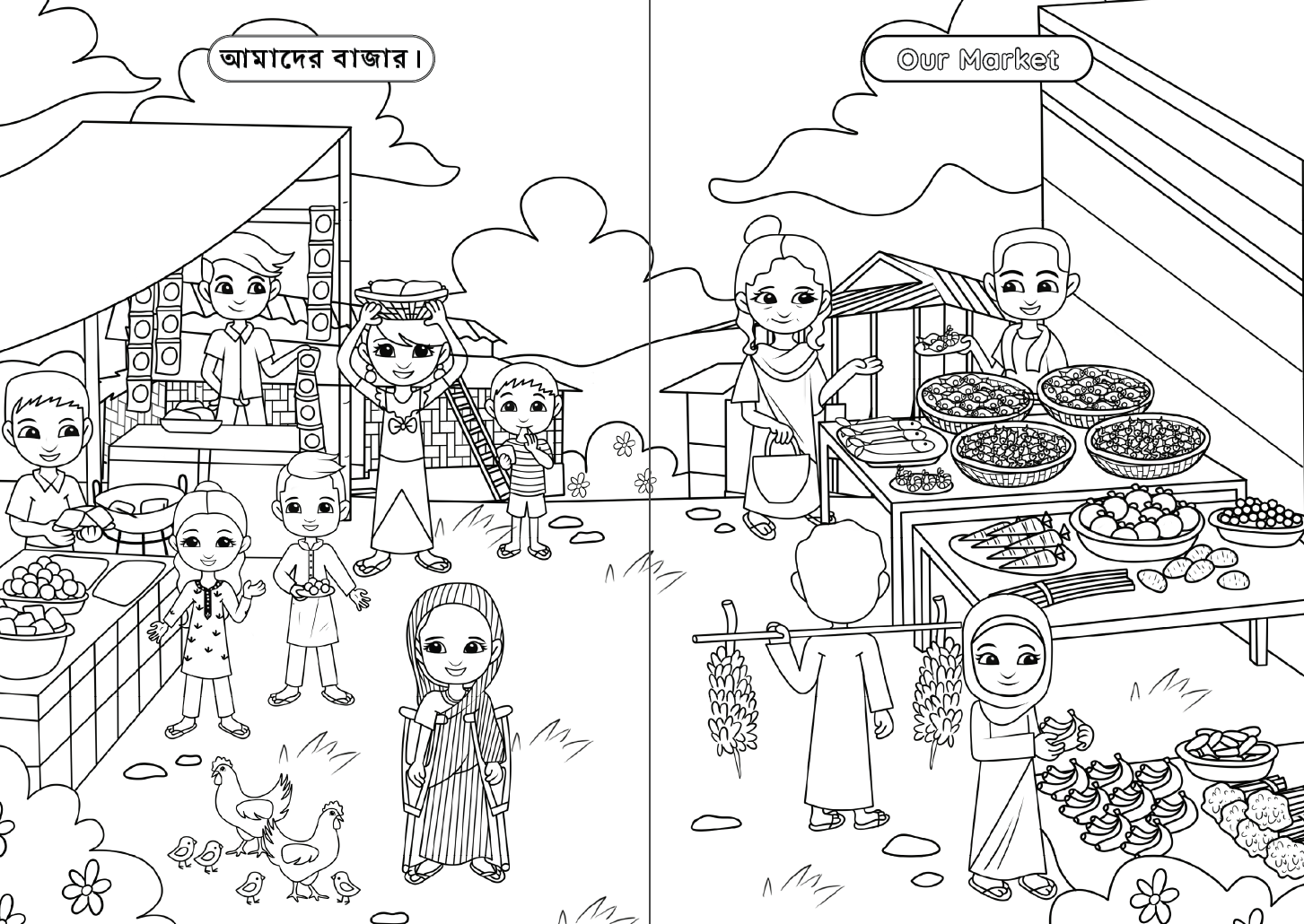 Join our Bangla friends, Rohim and Fatema, on an exciting journey to explore their favorite places in Bangladesh! Our coloring book captures the beauty of their vibrant community and invites children to color their world with their own creativity.