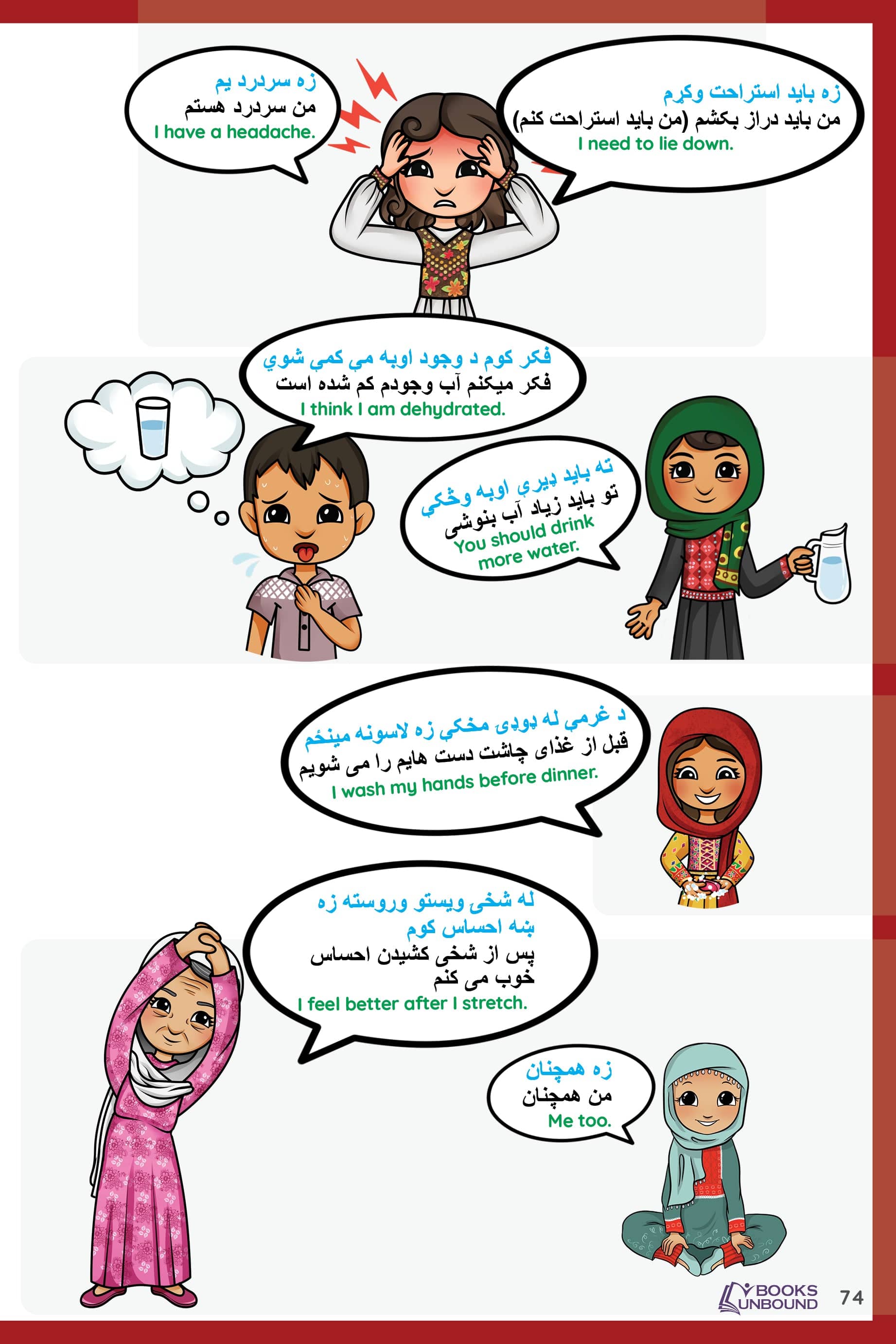 Our spiral-bound Picture Dictionary comes in the compact size of 156mm X 234mm (6.14" X 9.21"), so it's easy to carry around in your bag. The book includes 84 pages of basic vocabulary and contextualized cartoons, perfect for learning English, Dari, and Pashto. This book can serve as a supplementary or primary learning tool in either the classroom or at home.
