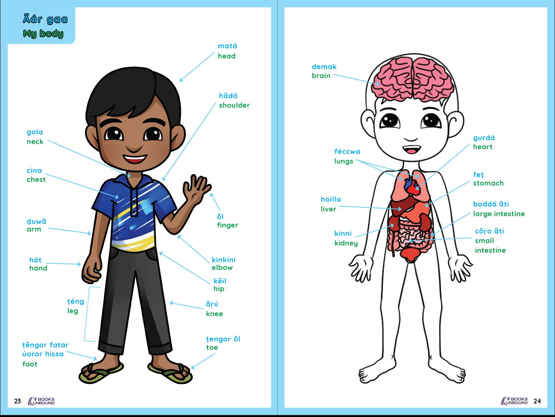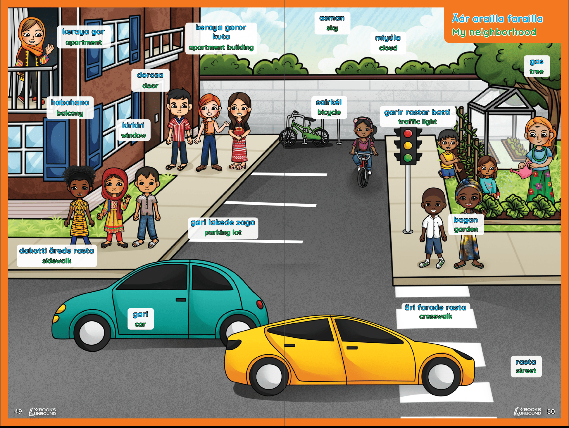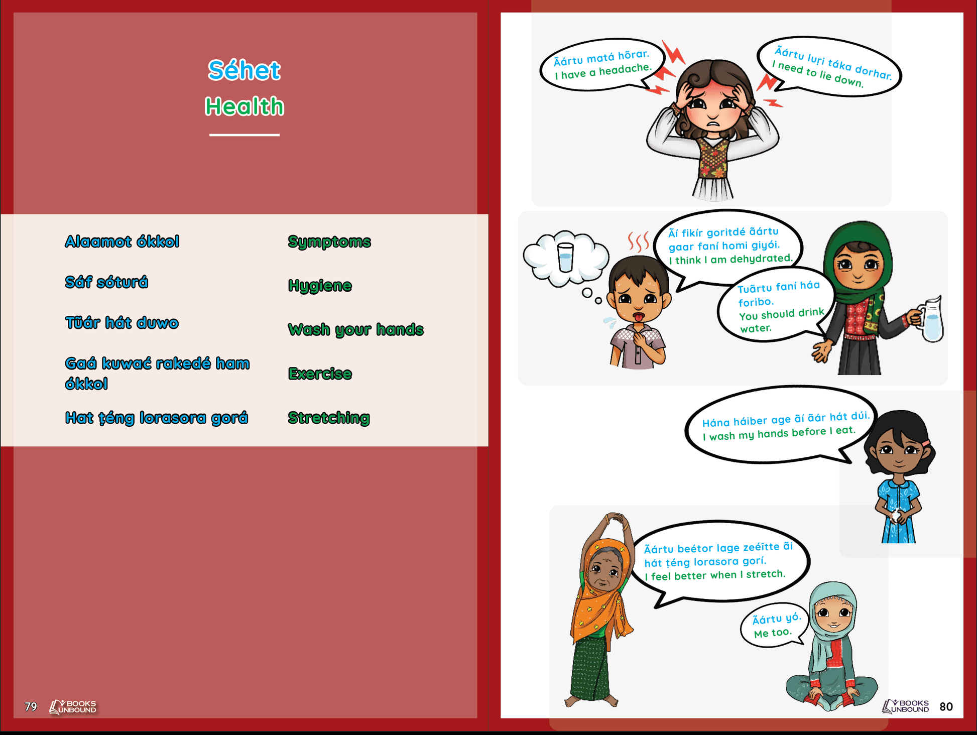 The book contains 90 pages of vibrant full-color illustrations, delving into 7 introductory conversational topics in both Rohingya and English. Whether used formally in classrooms or informally at home, this book fosters a sense of familiarity and belonging through relatable cartoons.
