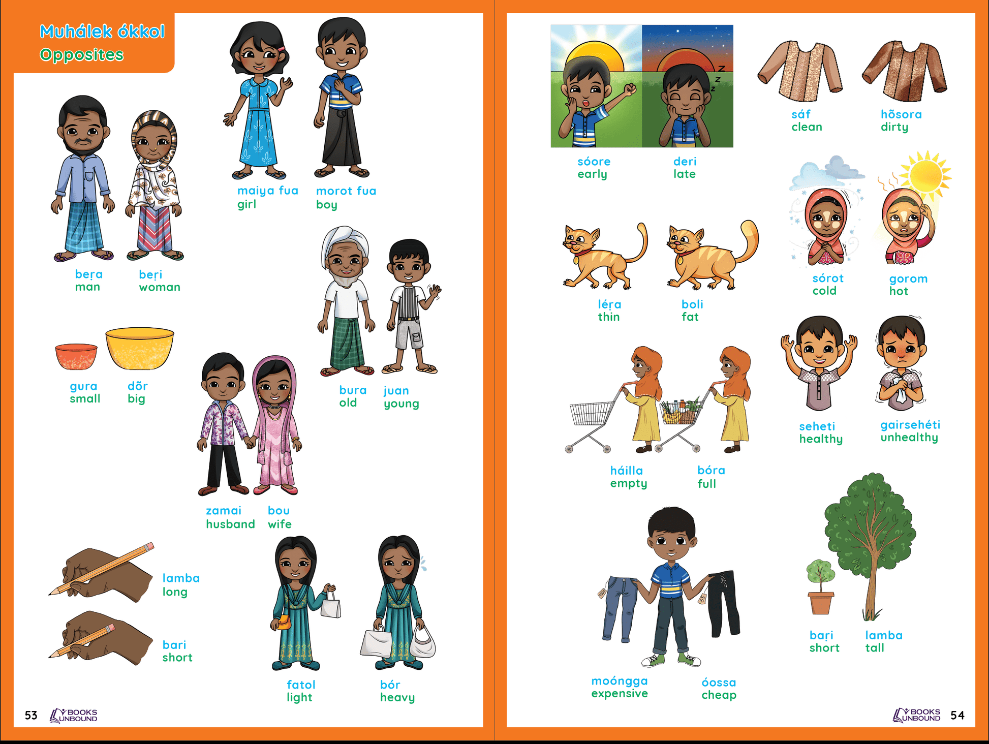 Introducing the first-ever Rohingya Picture Dictionary – a vital resource bridging language gaps for Rohingya children and adults arriving in the United States. This unique dictionary features written Rohingya and English, accompanied by culturally sensitive cartoons modeled after real people, providing an authentic representation of the Rohingya culture.
