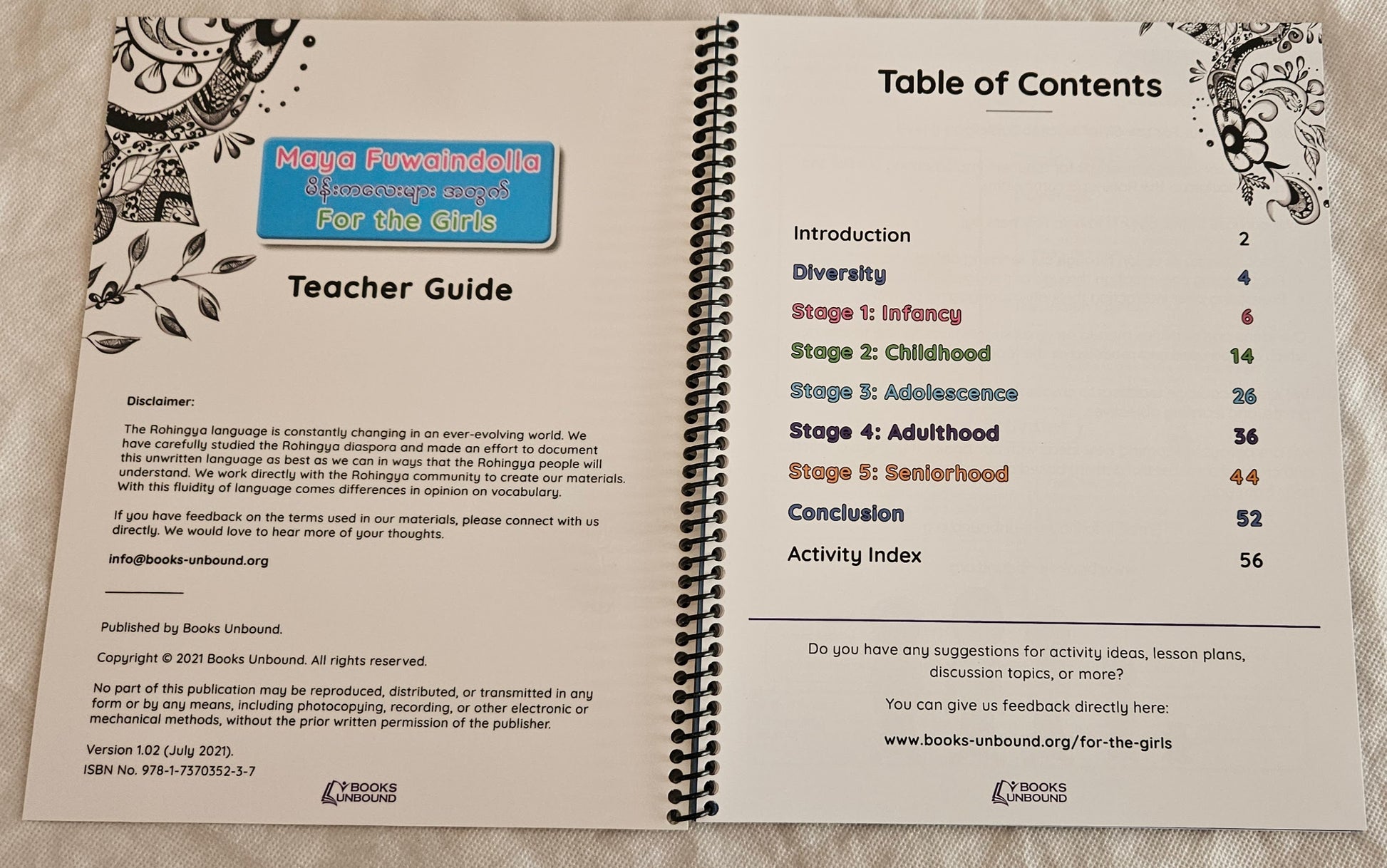 Content - The book contains less detailed content than the updated version. We completely re-did this book after the pilot version with several focus groups in Kutupalong, Bangladesh and in the United States.
